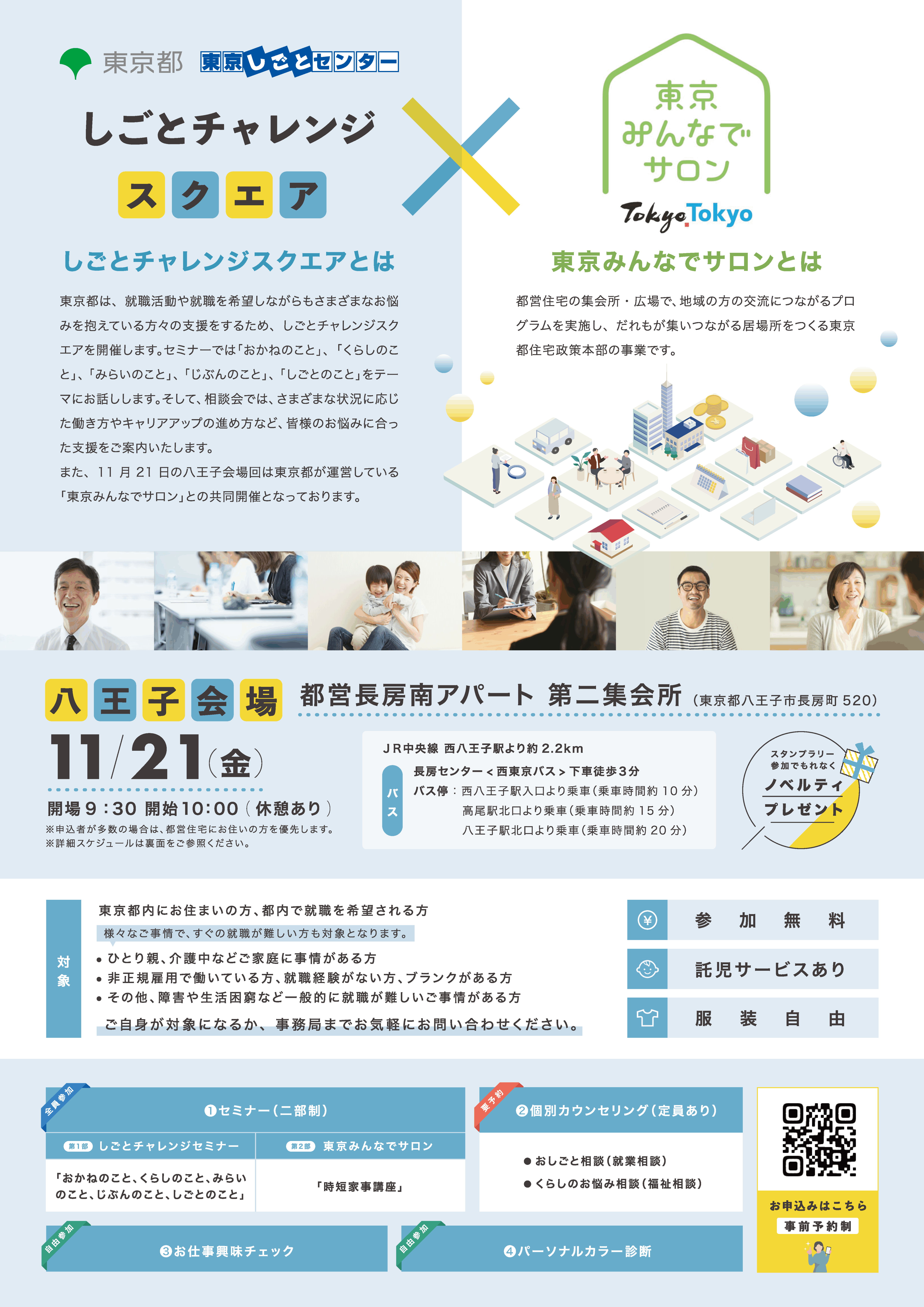 また、11月21日の八王子会場回は東京都が運営している「東京みんなでサロン」との共同開催となっております。