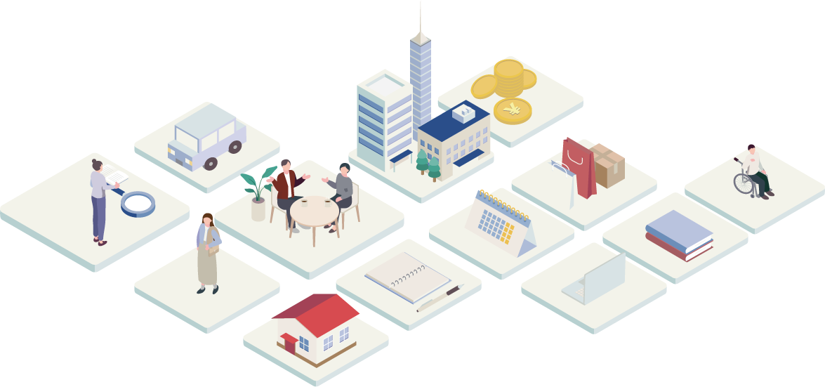 今後の生活設計のこと、自治体の様々な支援のことなど、現在お困りのことをお気軽にご相談いただけます。