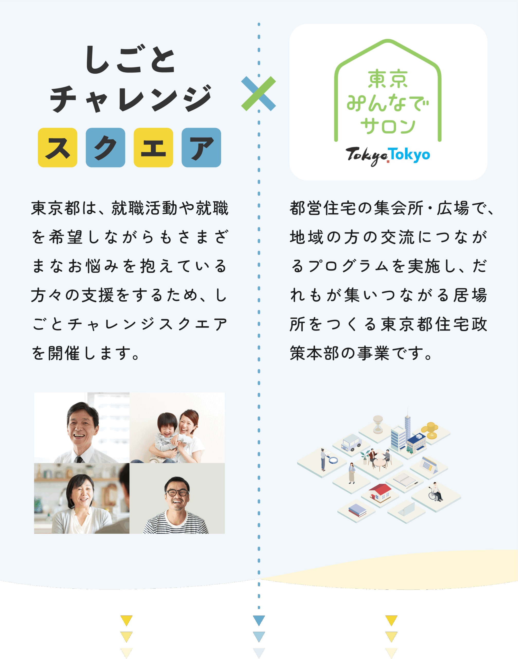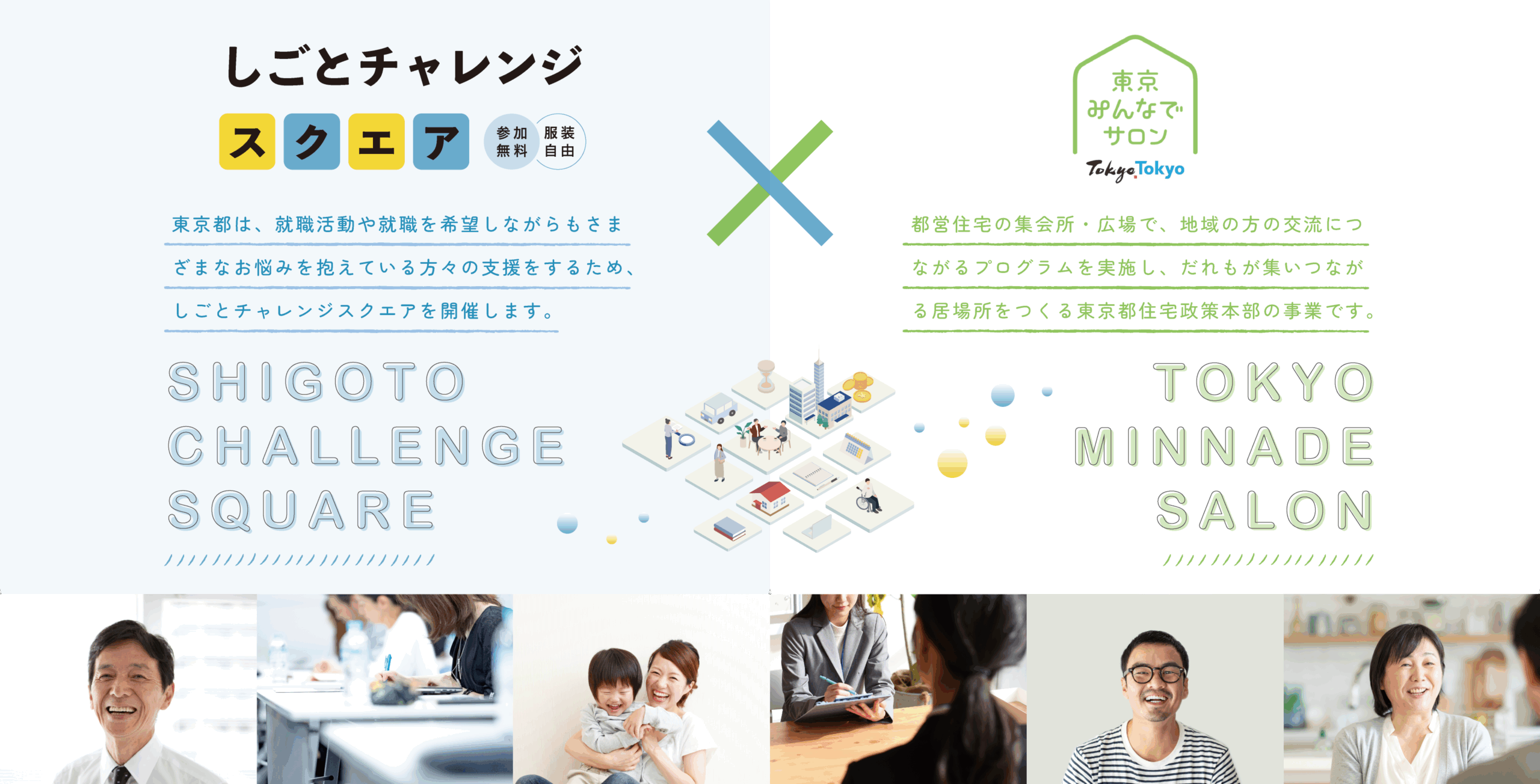 東京都は、就職活動や就職を希望しながらもさまざまなお悩みを抱えている方々の支援をするため、しごとチャレンジスクエアを開催します。セミナーでは「おかねのこと」、「くらしのこと」、「みらいのこと」、「じぶんのこと」、「しごとのこと」をテーマにお話しします。そして、相談会では、さまざまな状況に応じた働き方やキャリアアップの進め方など、皆様のお悩みに合った支援をご案内いたします。